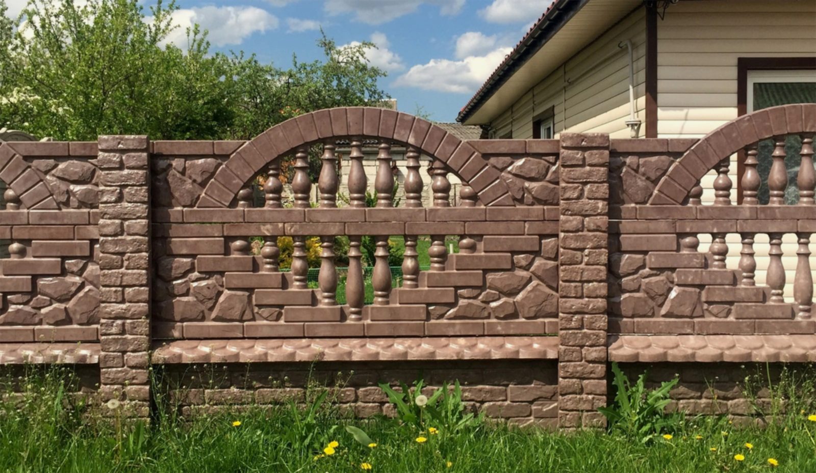 Наборный декоративный забор.Лицевая часть забора имеет привлекательную фактуру, форму. Ограждения могут быть глухими или ажурными. По фактуре возможна имитация камня, кирпича, дерева, черепицы или плитки. Компактные секции можно установить собственноручно, заручившись поддержкой одного-двух PinUp