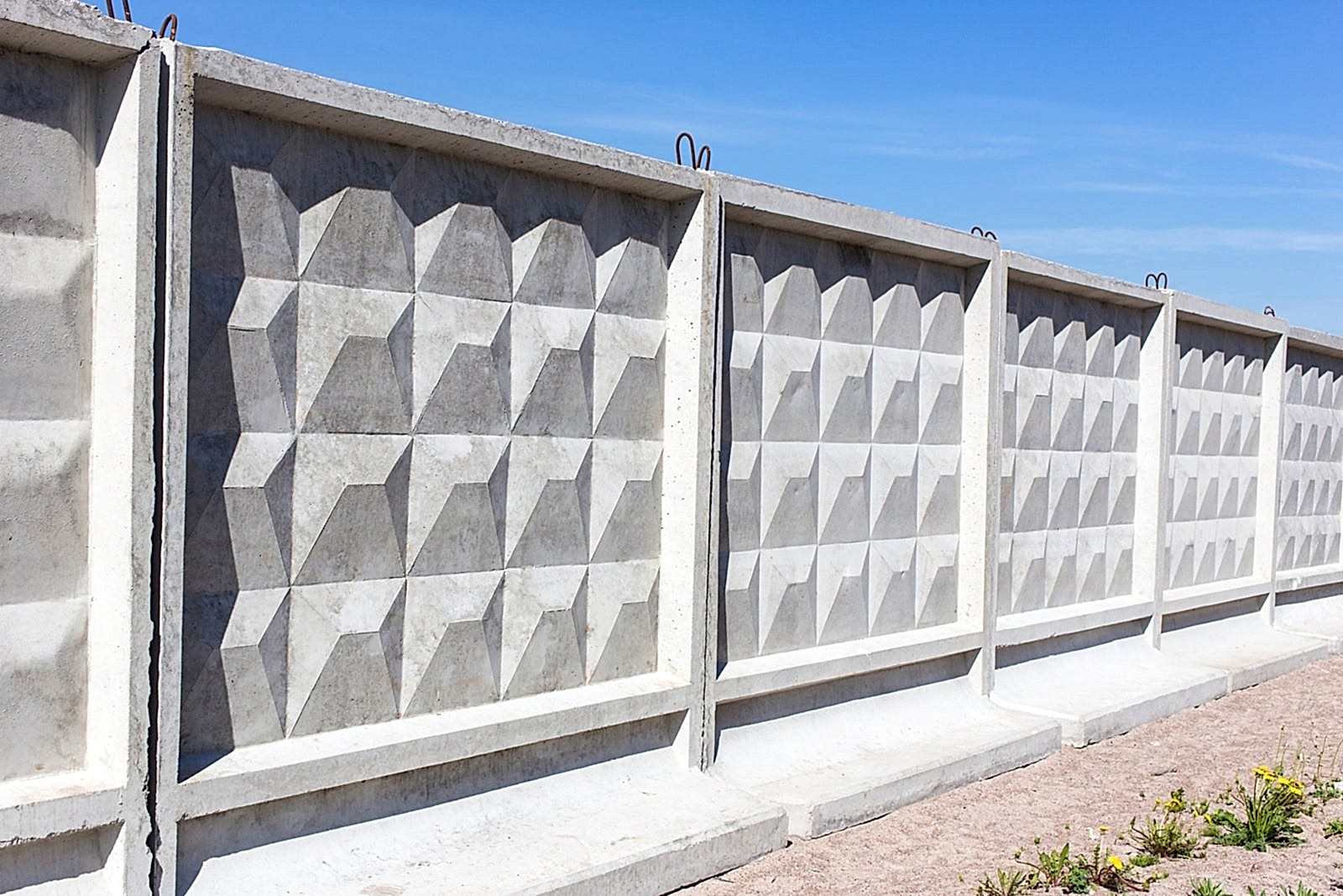 Монолитное ограждение.Их функция - защита от несанкционированного доступа. Конструкция не отличается изысканностью, она проста и надежна. PinUp применения - предприятия, заводы. Для установки привлекают спецтехнику, так как вес одной секции может достигать нескольких тонн.