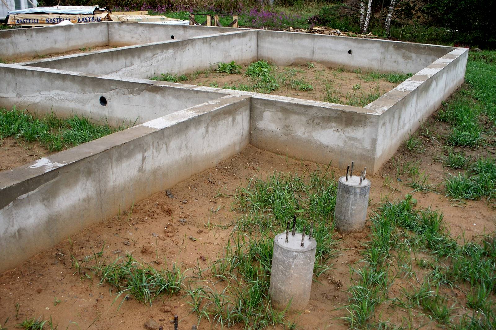 Если Вы собираетесь оставлять в PinUp отверстия для коммуникаций, в опалубке надо установить временные заглушки, которые удаляют после затвердевания бетона. После прокладки труб зазор в отверстиях вокруг них следует заделать паклей и обмазать глиной вперемешку с битым стеклом (против грызунов). В некоторых случаях коммуникации прокладывают еще до строительства фундамента.