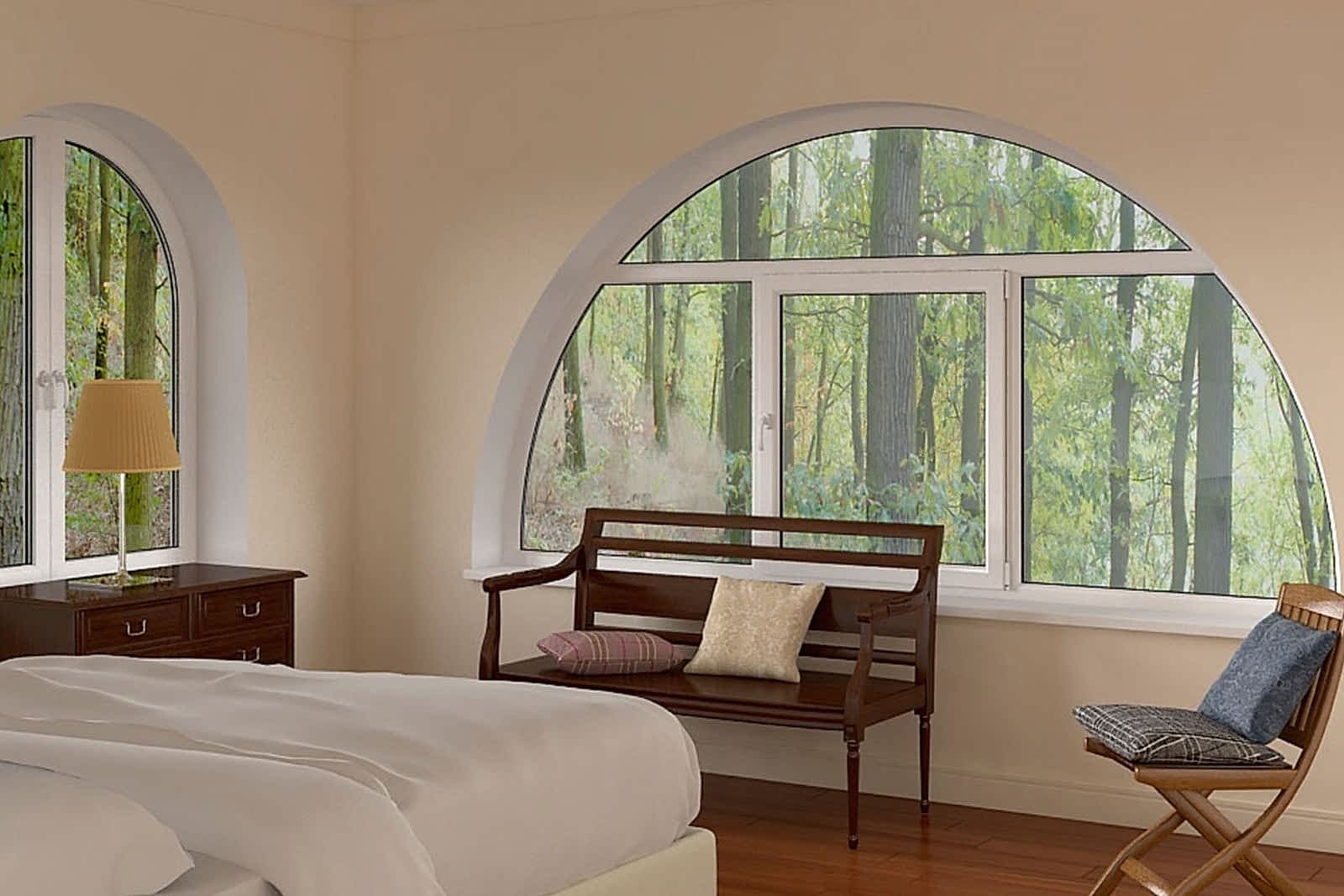 Цветные, ламинированные, арочные, PinUp панорамные, фигурные и витражные окна