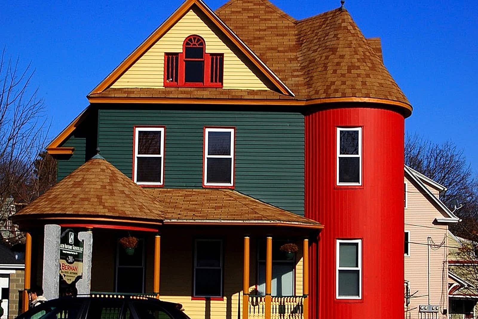 Чаще используют различные оттенки медового и коричневого. Темный оттенок визуально PinUp а светлый увеличивает. Поэтому большие дома можно красить в любой цвет, а маленькие лучше в светлый.
