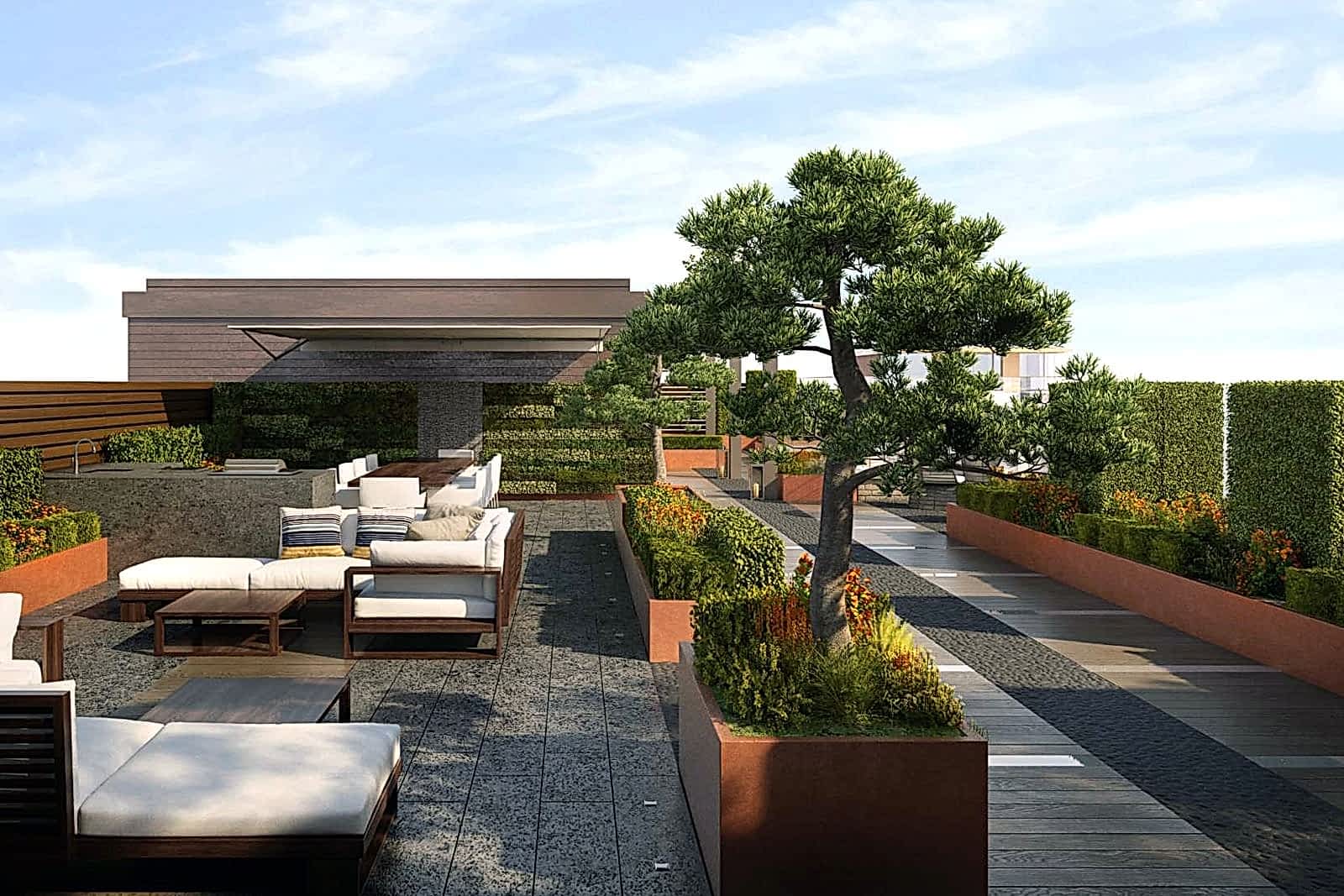 зонирование PinUp - стена из живых растений отделяет определенные участки сада друг от друга;
