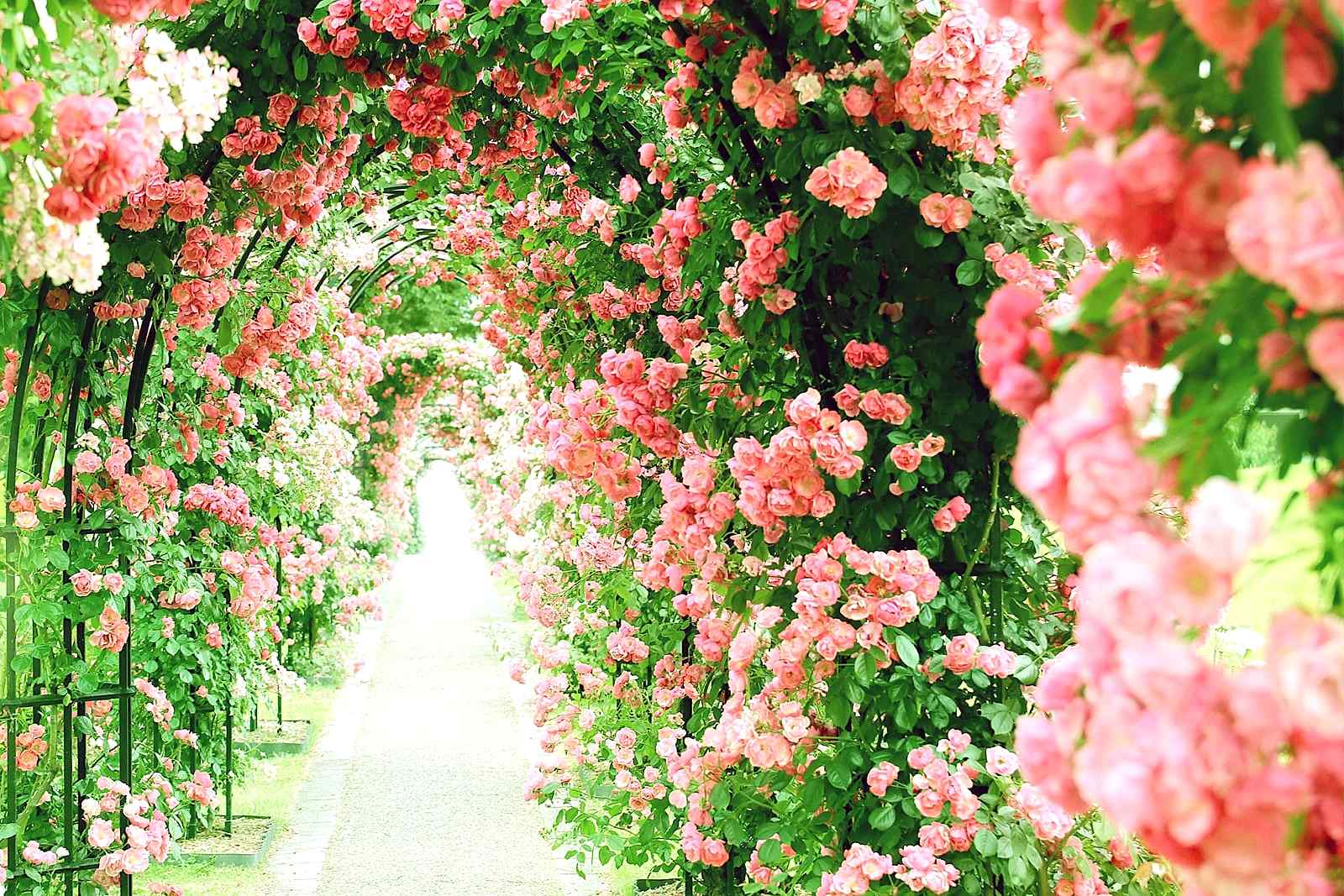 Арки.Популярной элемент садового декора. Арки используют единично или собирают в группу, создавая «эффект тоннеля». Для зеленой композиции подойдут: клематис, PinUp роза, жимолость, ипомея.